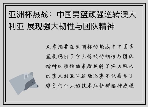 在一场扣人心弦的比赛中,新疆队凭借顽强的毅力和坚韧的拼搏精神,完成了一次惊天逆袭,成功翻盘战胜了华山...